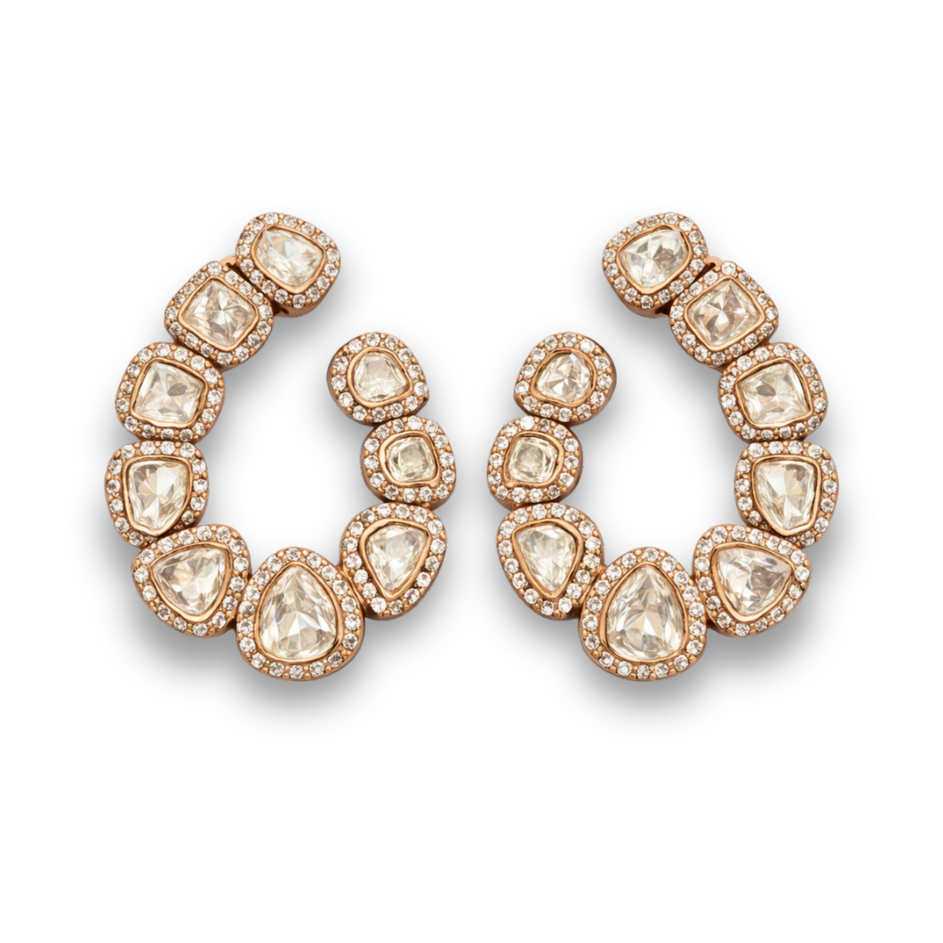 A luminous circle of faceted polki-style stones forms the elegant silhouette of the Aurelia earrings. Set in a soft matte rose gold finish, this statement hoop blends modern refinement with timeless sparkle - designed to elevate both festive and evening looks.