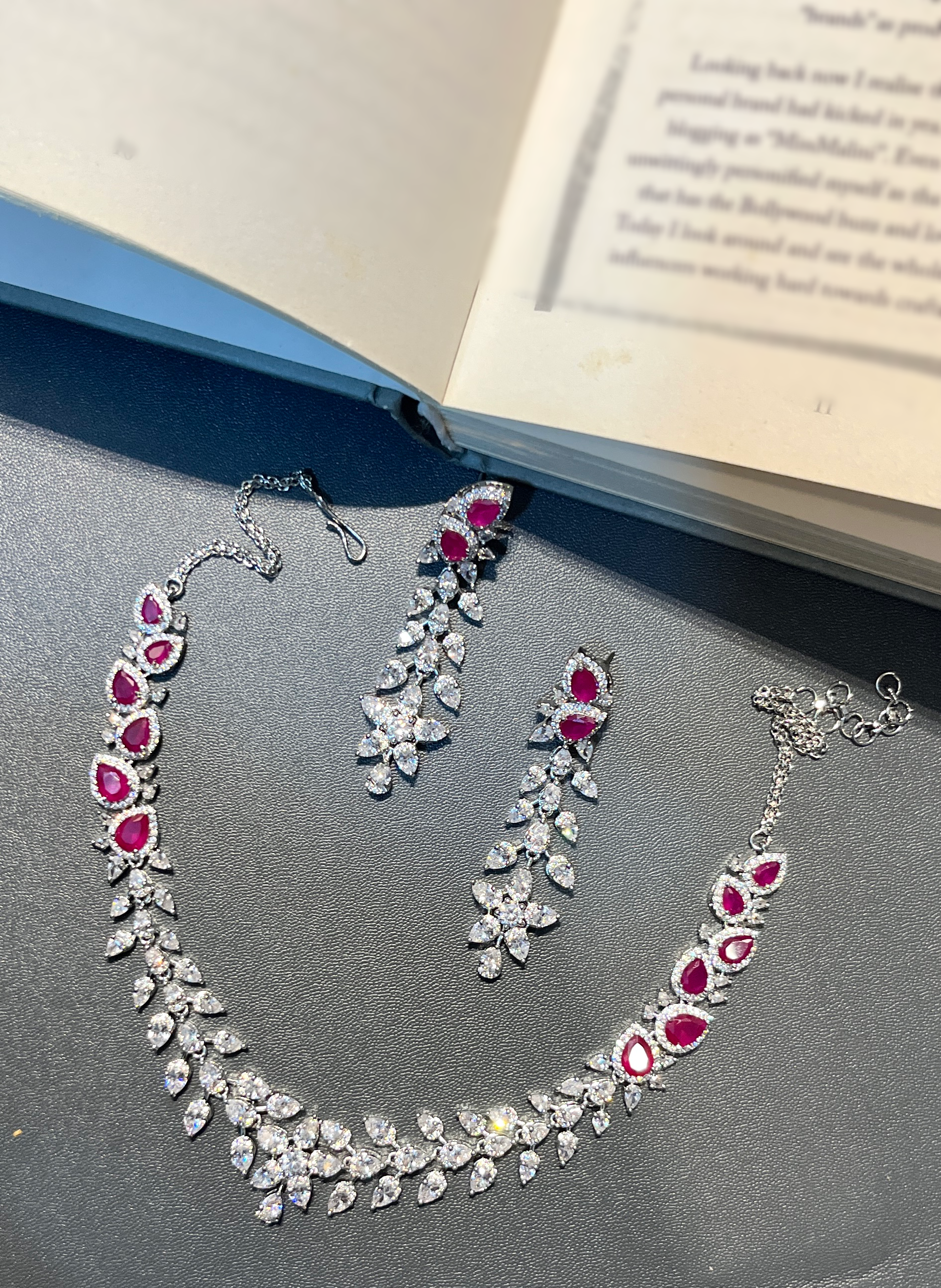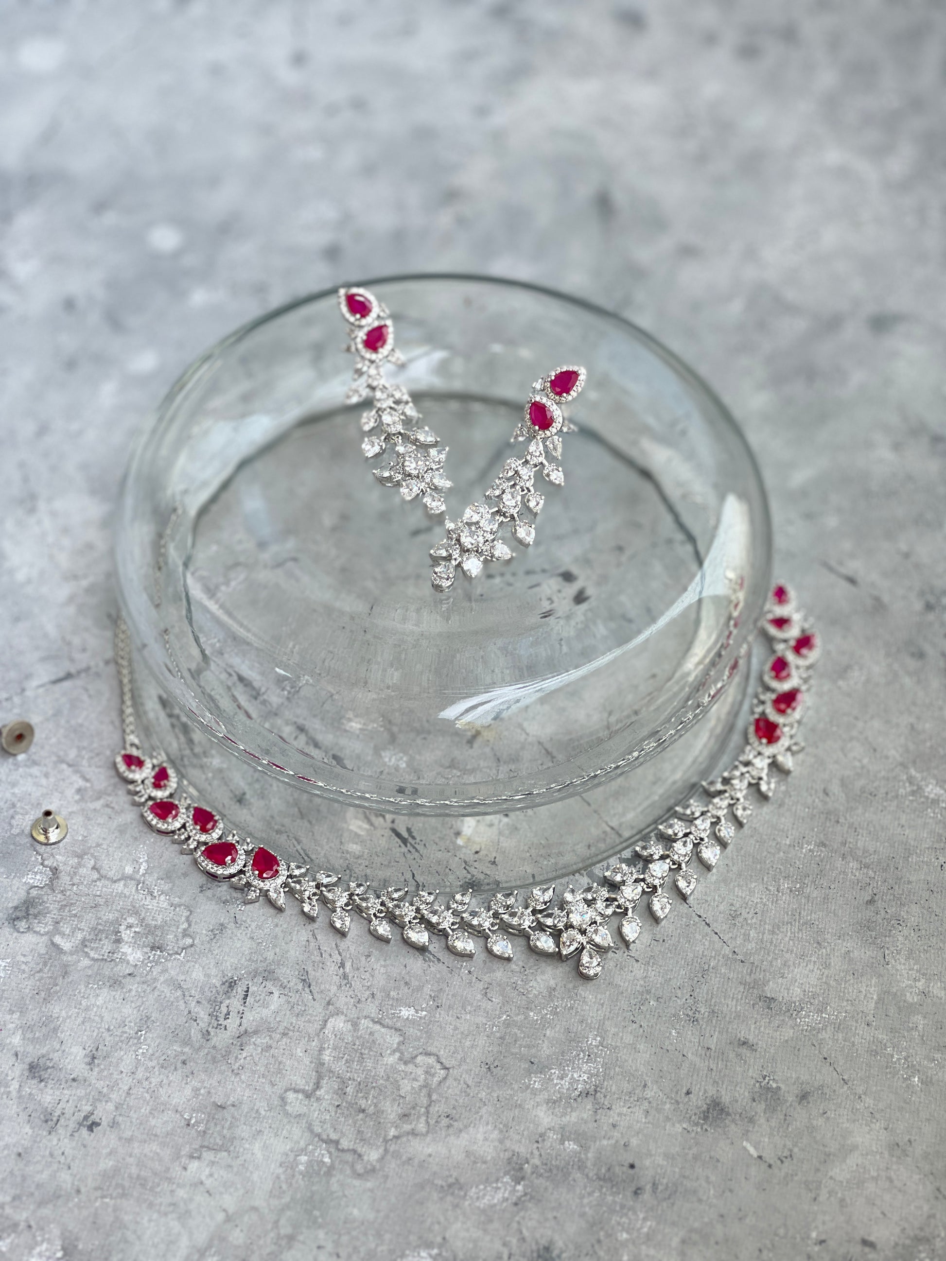 The "Whimsical Blooms" Necklace offers a delicate balance of sophistication and fun. Its white floral design, adorned with shimmering white and red zircon accents, brings a touch of whimsy to any ensemble, making it a perfect accessory for adding a hint of charm and style to your look.